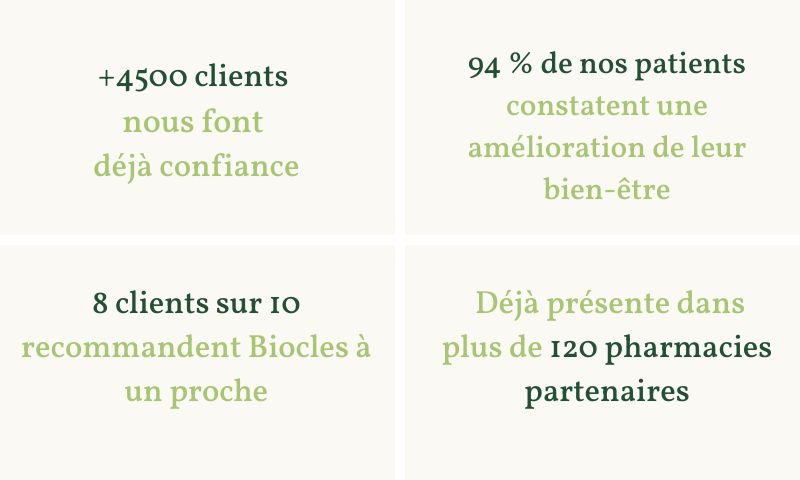 Créée en 2022, nos compléments sont commercialisés depuis 2023. En moins de deux ans, Bioclès s’impose auprès des professionnels de santé et conquiert des milliers d’utilisateurs convaincus par l’efficacité de nos formules