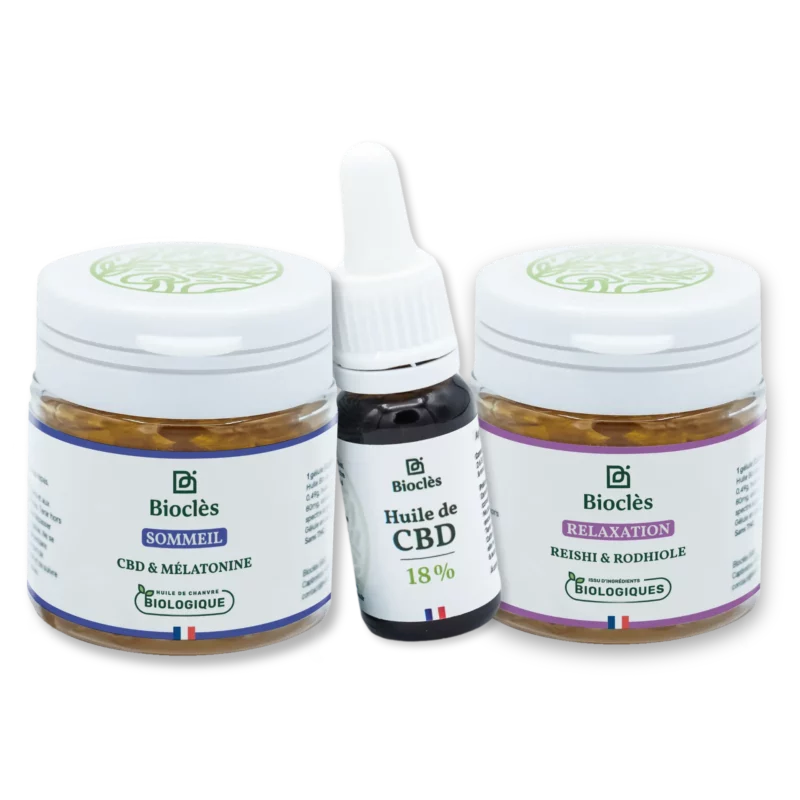 Votre solution complète pour éviter le burn-out ! Avec une routine simple à suivre : les gélules Relaxation pour commencer la journée en douceur, l’huile buccale CBD 18% comme soutien anti-stress à emporter partout, et les gélules Sommeil pour des nuits apaisantes et réparatrices.